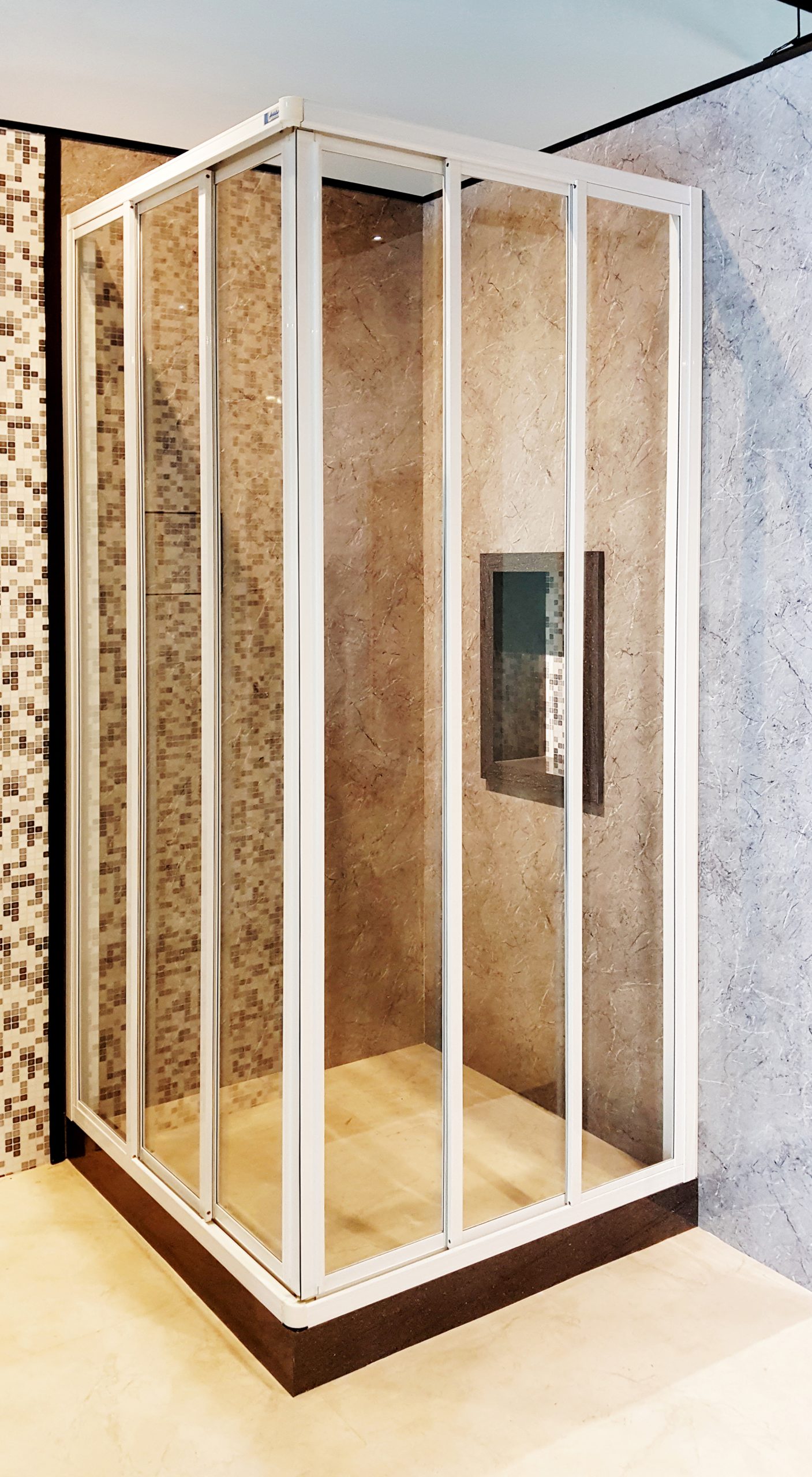 Concord Series, a corner entry on both sides glass sliding door shower screen features a design where both side panels meet at a right angle, creating an L-shape enclosure. This shower screen is suitable for bathrooms with a corner installation. Optimising space effectively. The corner-entry configuration is versatile, making it a practical choice for bathrooms of various sizes.
