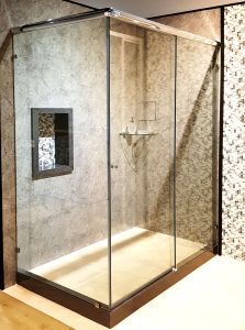 (Monza Series) L-shape frameless sliding system with 8mm clear tempered safety glass shower screen 2